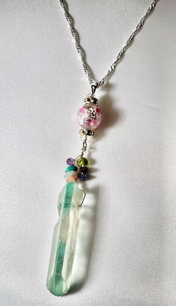 8種のパワーストーンと蓄光琉球ホタルガラスのネックレス — 多彩な石が導く、調和と前向きなエネルギー —