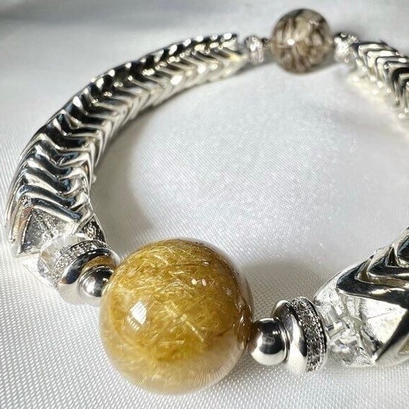 ハブ珠と大玉ルチルクォーツ メタルスネークブレスレット ― 金運と守護を纏う ―