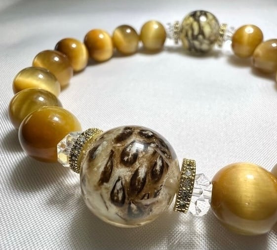 最強金運本ハブ皮使用 「ハブ珠」とゴールデンタイガーアイ(10mm)ブレスレット — 富を引き寄せ、身を護る —