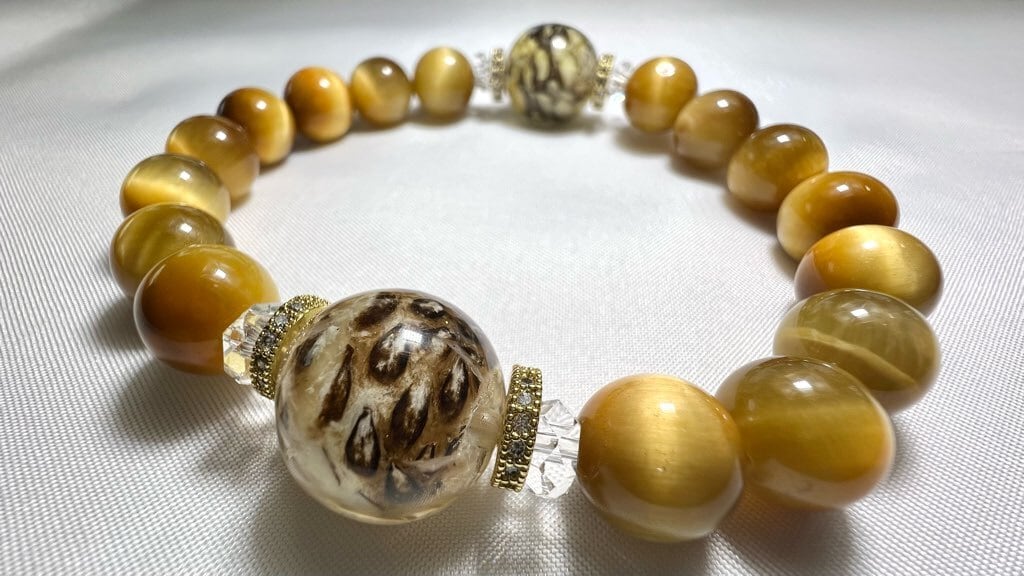 最強金運本ハブ皮使用『ハブ珠』とゴールデンタイガーアイ(10mm)ブレスレット