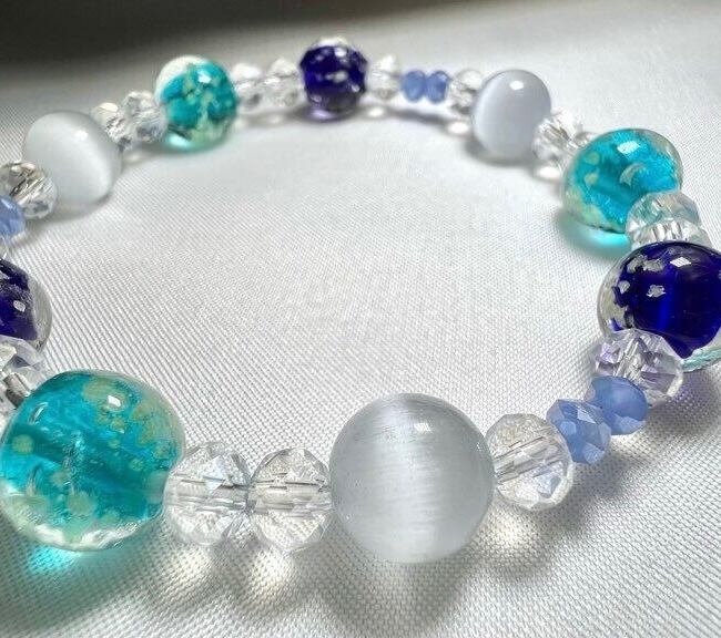 夜光ガラスと魔除けキャッツアイガラスのブレスレット ― 静かな光が、心を守る ―
