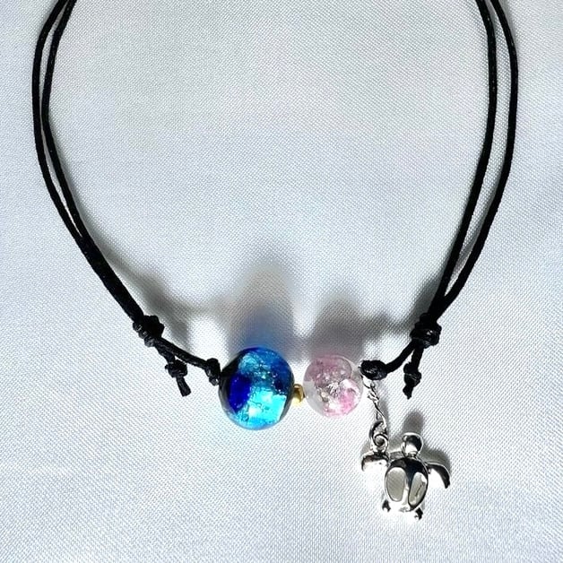 2色の琉球ホタルガラス アンクレット ウミガメチャーム付き ― 海とともに歩く ―