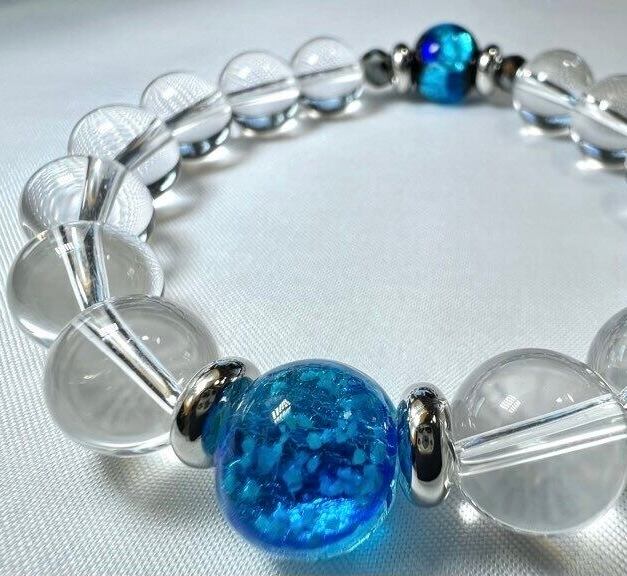 12mm水晶と 2種の蓄光琉球ホタルガラス ブレスレット ― 澄み渡る光、島の記憶 ―