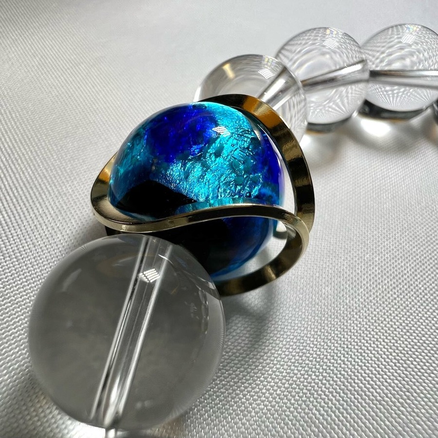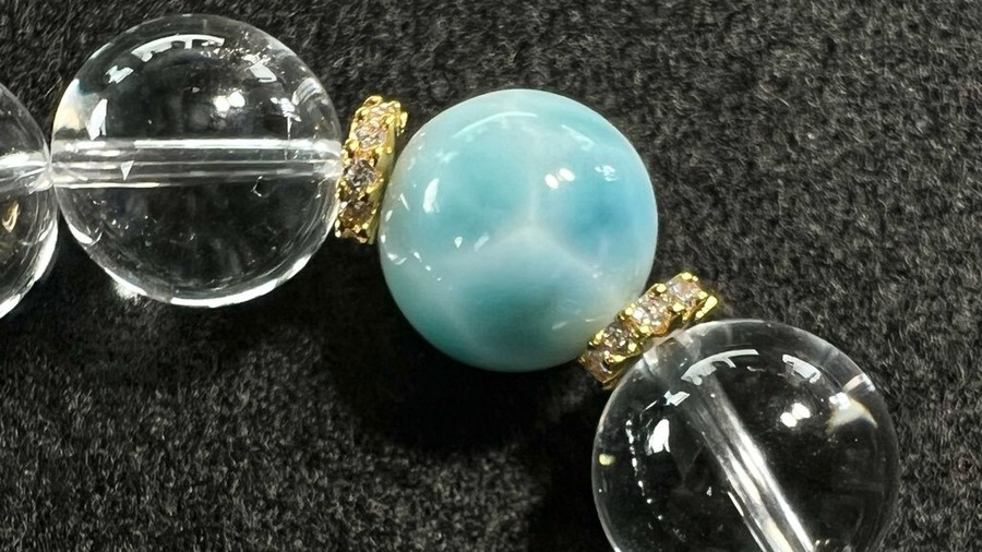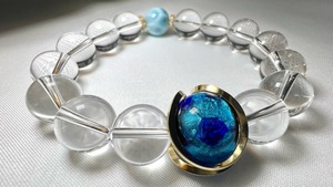 12mm水晶ブレスレット 最上等級ラリマーと蓄光琉球ホタルガラス付き