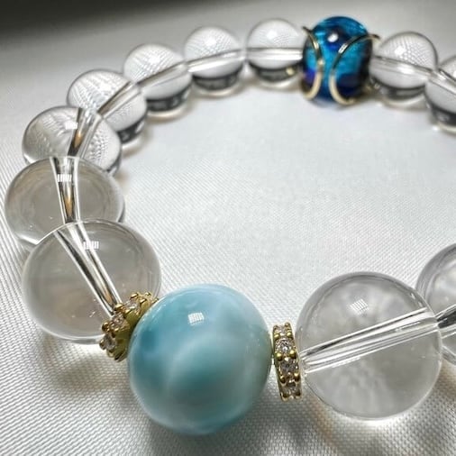 12mm水晶ブレスレット ― 最上等級ラリマーと蓄光琉球ホタルガラス ―