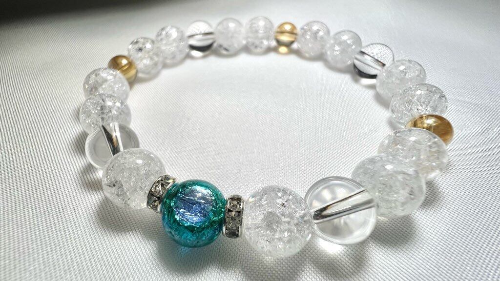3種の水晶と蓄光琉球ホタルガラスのブレスレット