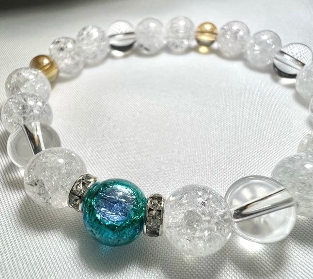ー浄光(じょうこう)の輪ー 3種の水晶と蓄光琉球ホタルガラスのブレスレット