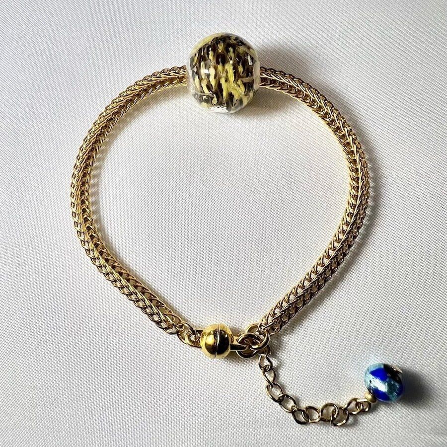 最強金運・魔除け ハブ皮珠 ゴールドウィートチェーンブレスレット