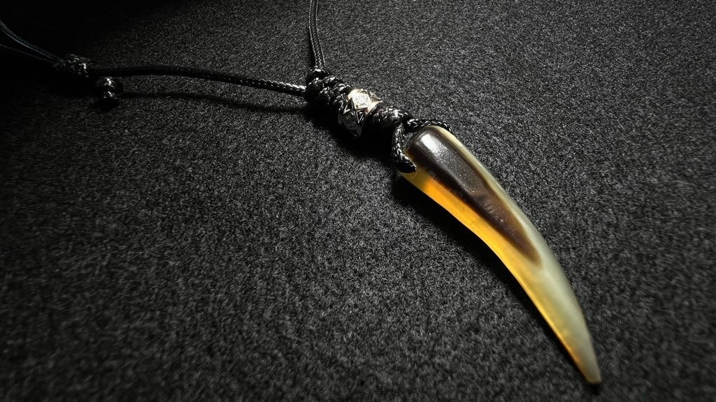 宮古牛の角《牙型》ネックレス サイズ調整可能ワックスコード