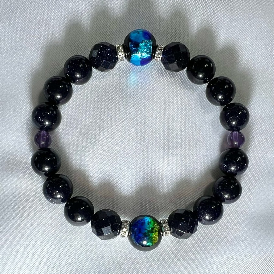 夢・目標のサポート ブルーサンドストーン10mmとホタルガラスブレスレット