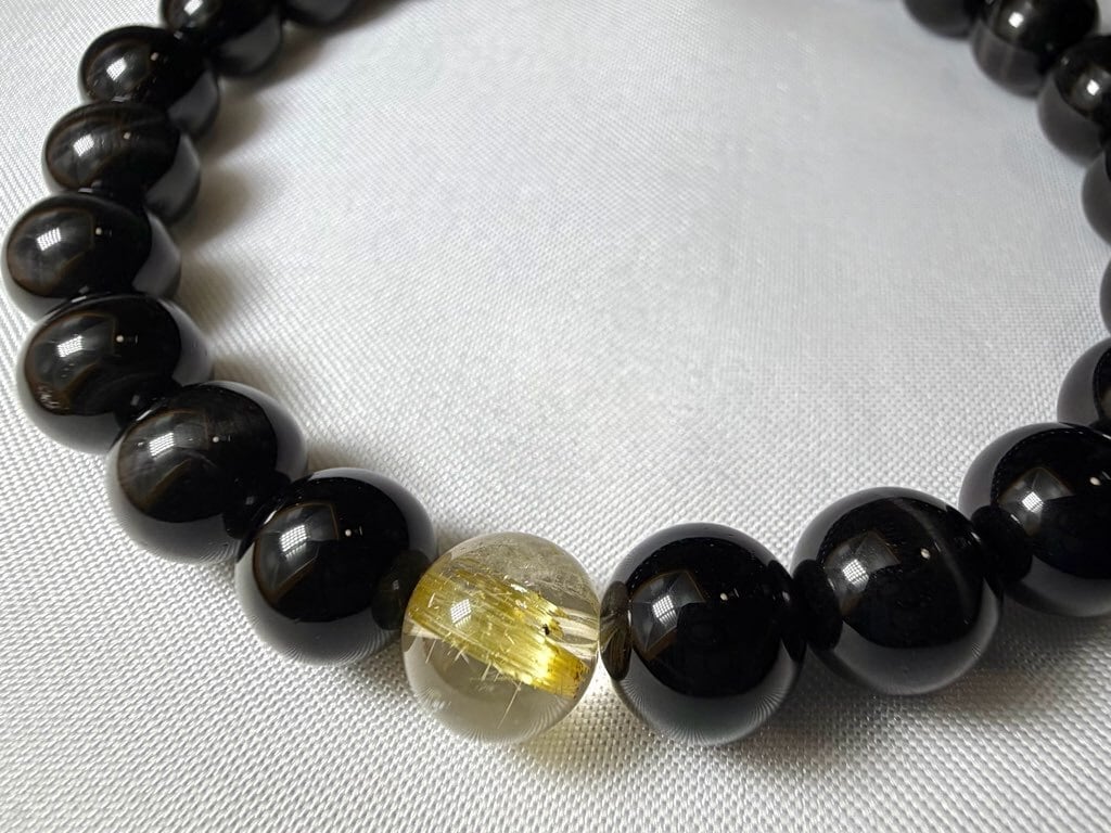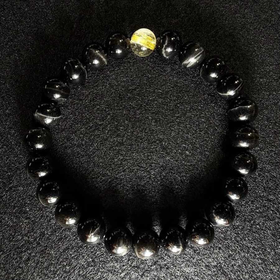 希少!ブラックタイガーアイブレスレット(8mm珠 タイチンルチル)