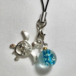 夜に光る ウミガメのお守りストラップ〈蓄光ガラス・全11色〉