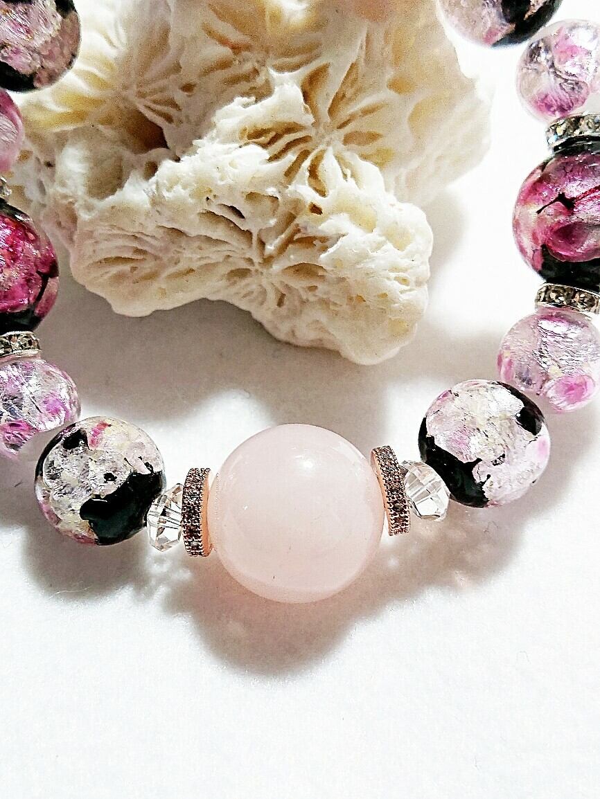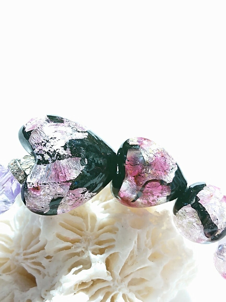 愛の石と夜光ホタルガラスブレスレット