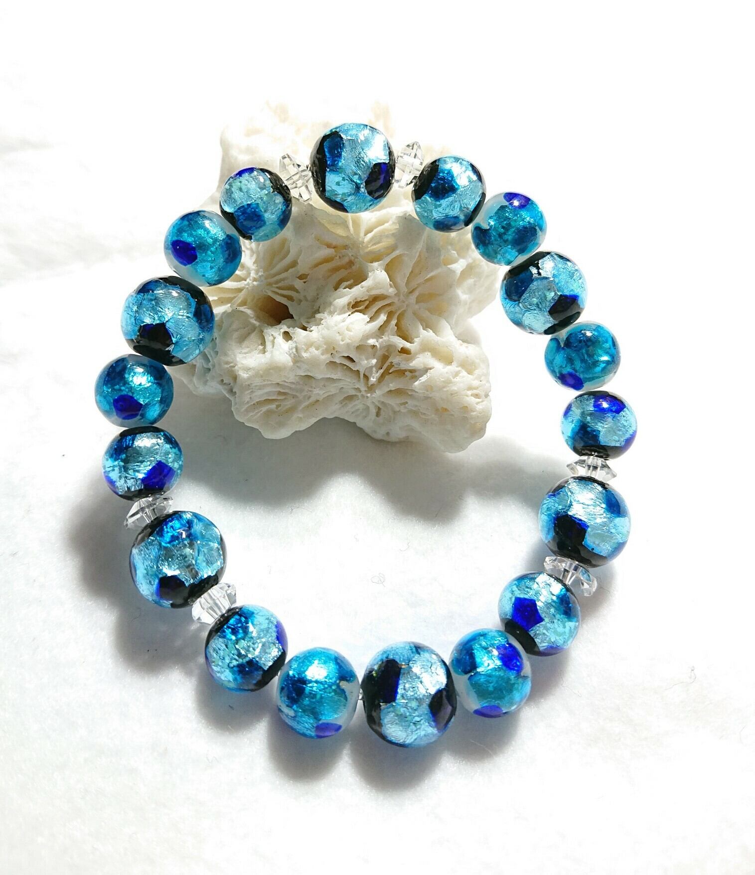 夜光ホタルガラスと水晶ブレスレット