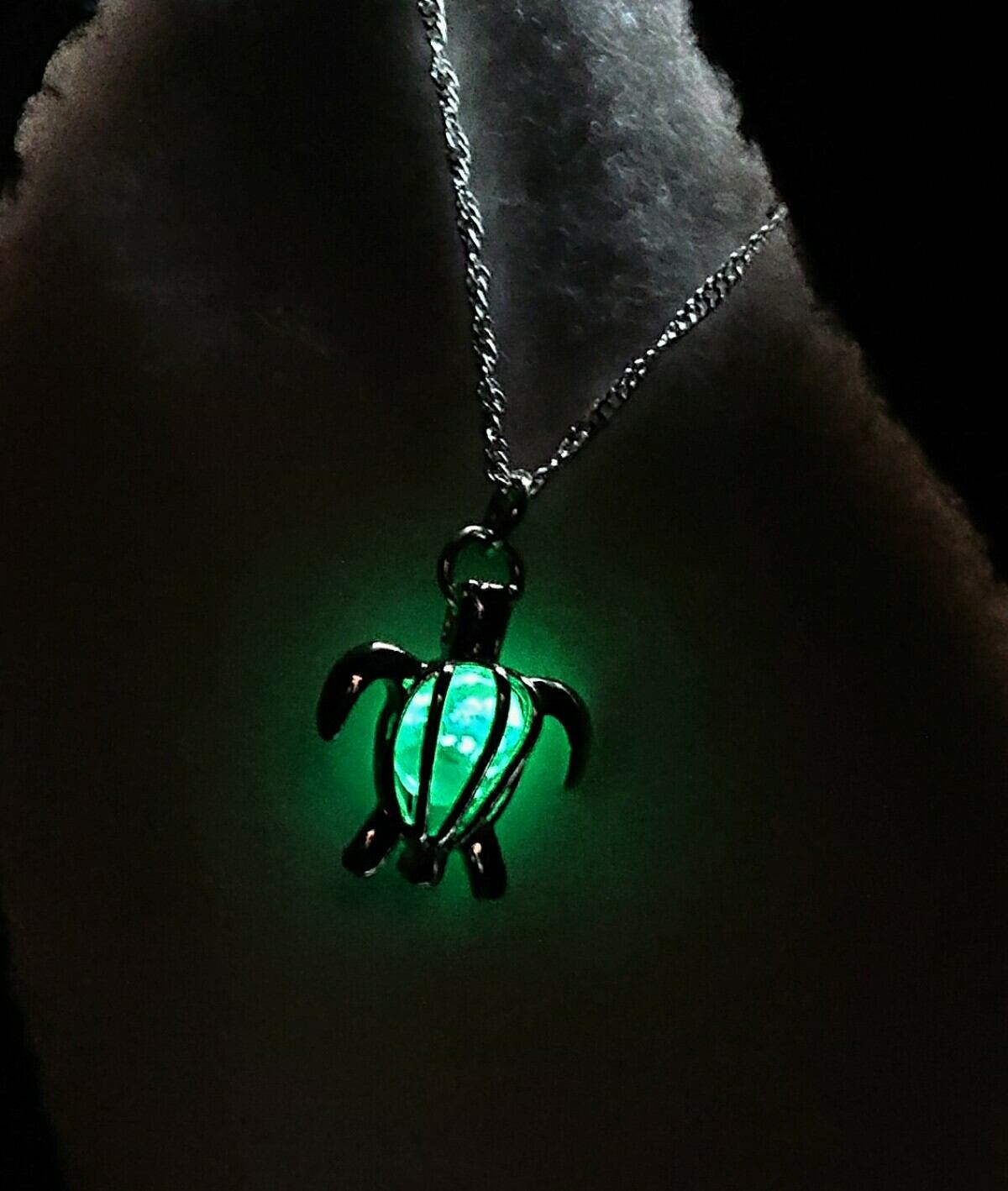 立体海ガメロケットチャームネックレス(エメラルドグリーン)
