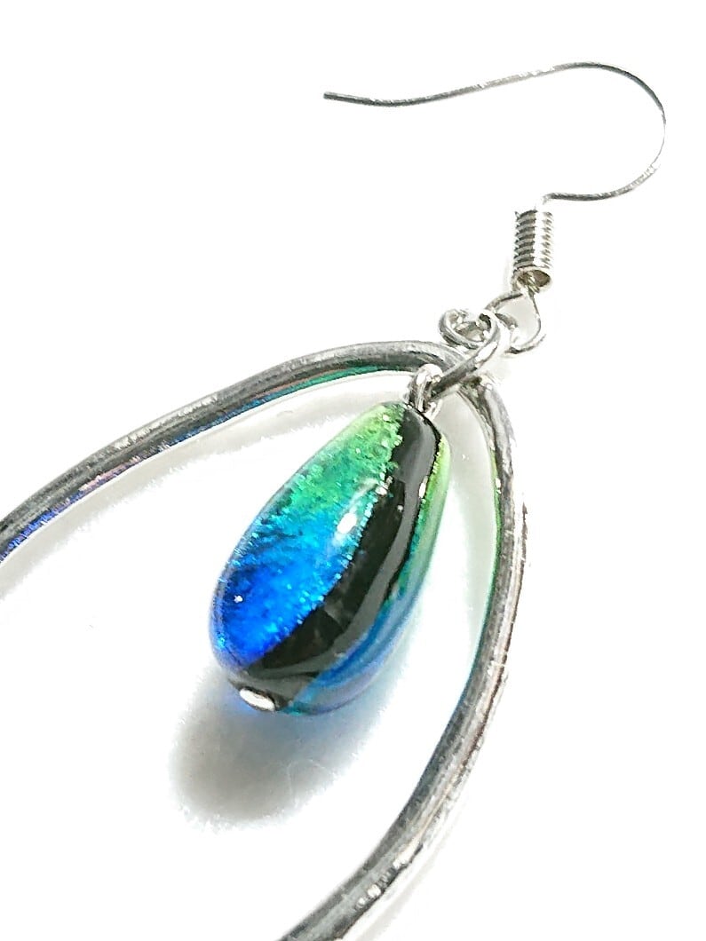 夜光タイプの新色グラデーショングリーンの雫型琉球ホタルガラスをドロップフレームに✨✨✨