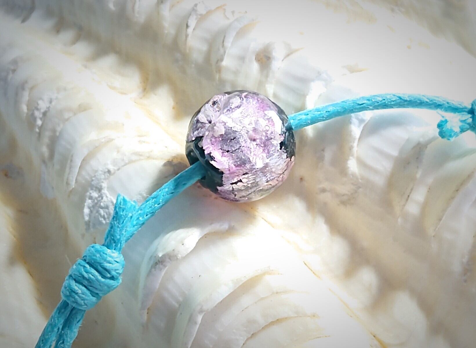 夜光タイプの琉球ホタルガラスをアンクレットに✨