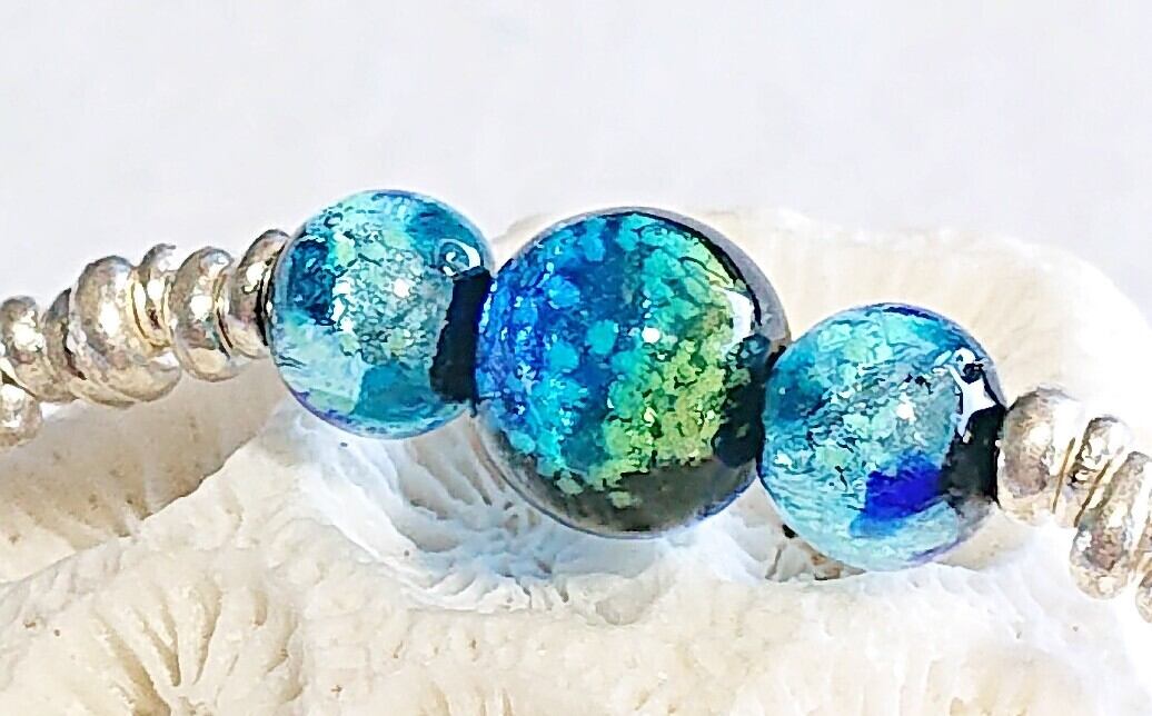 3mm(前後)幅の小粒シルバーに、人気の2色の琉球ホタルガラスを配置