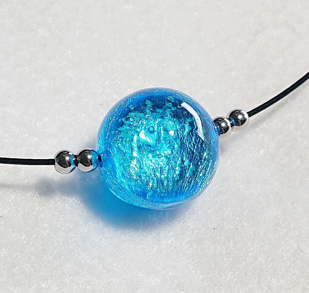宮古アイランドブルー琉球ホタルガラス ワイヤーネックレス 20mm珠