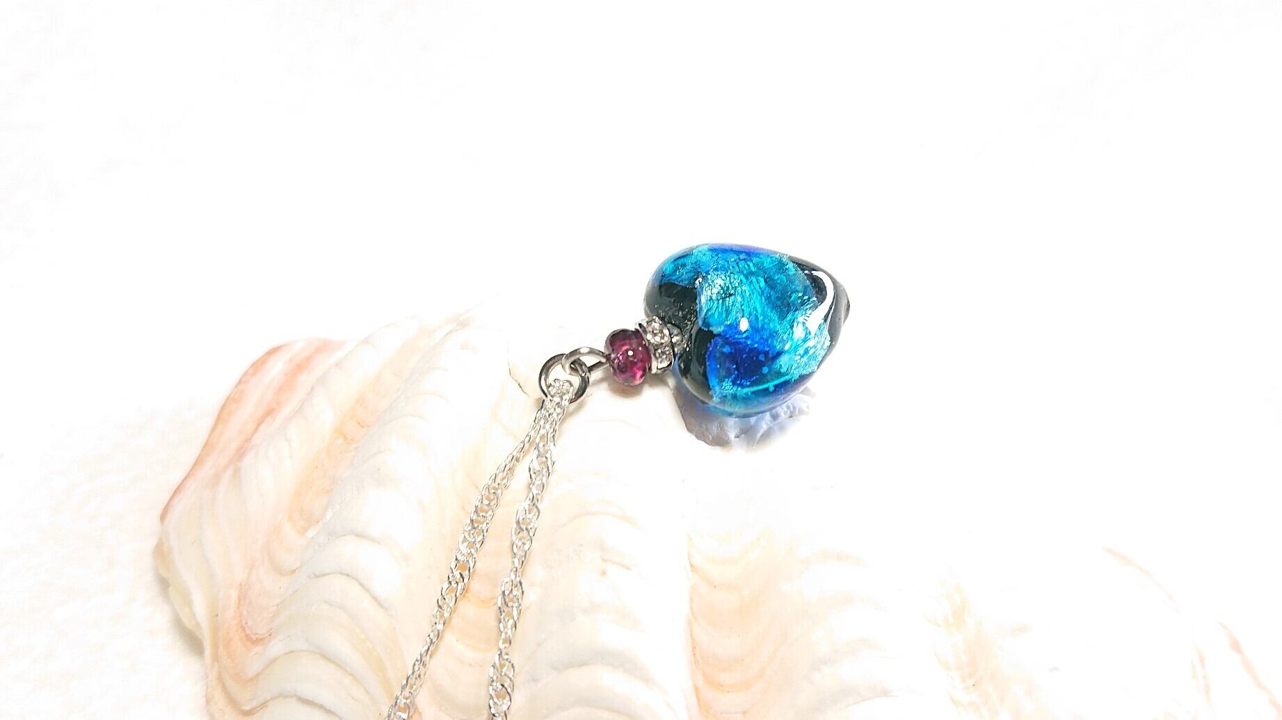 夜光ホタルガラスネックレス(スモールハートブルー)