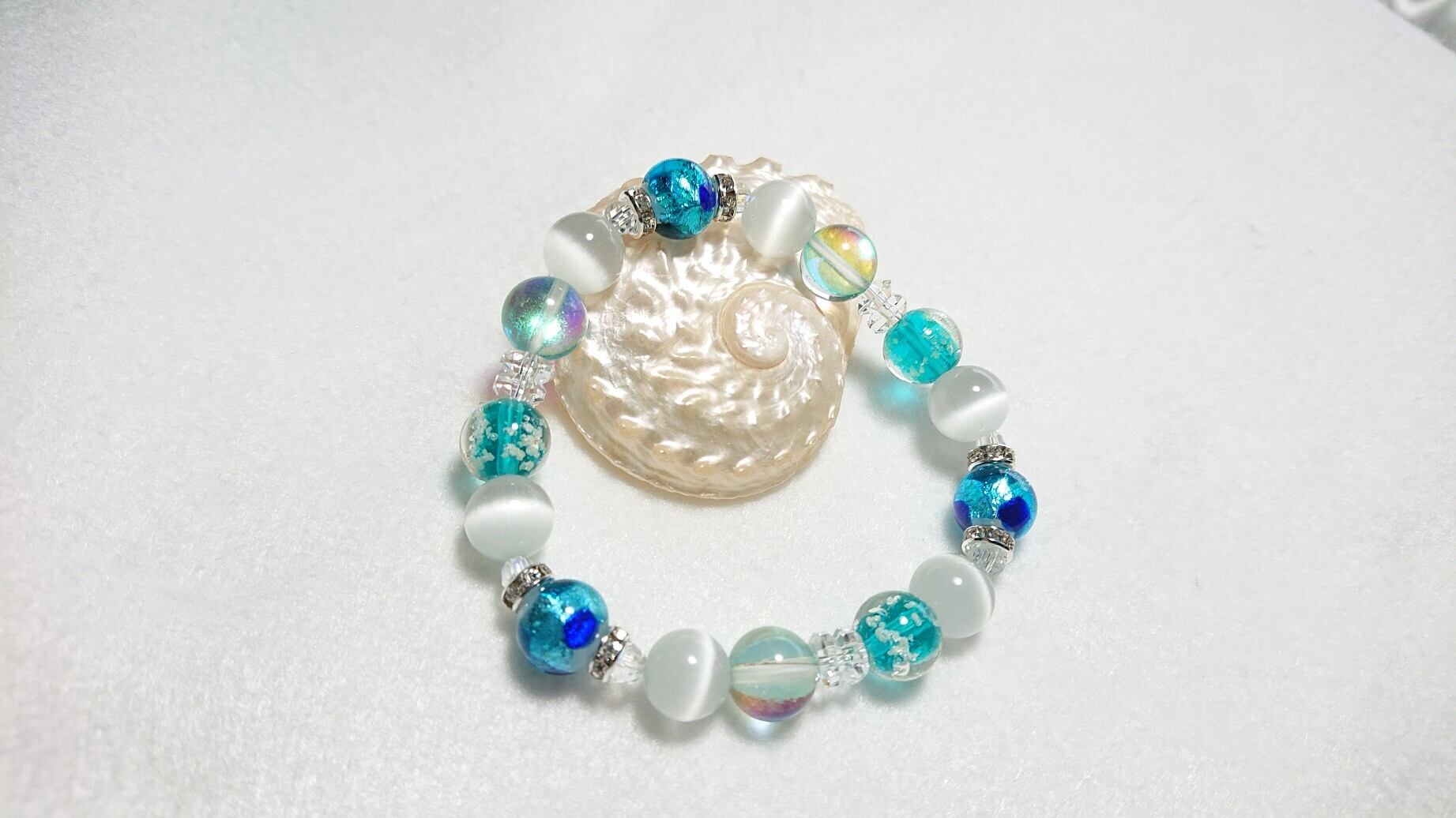 猫の目のような美しいキャッツアイ効果のホワイトガラスは魔除けとなります
