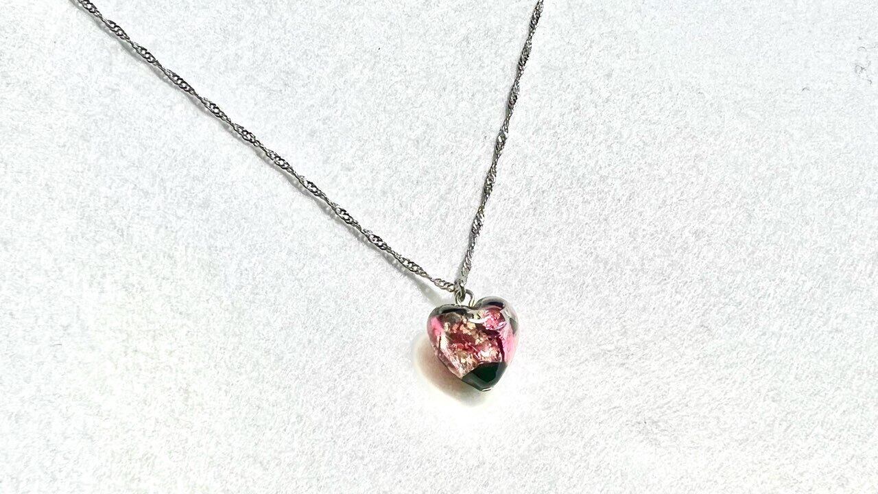 暗い所でも幻想的に美しい蓄光(夜光)タイプの琉球ホタルガラスのネックレスです