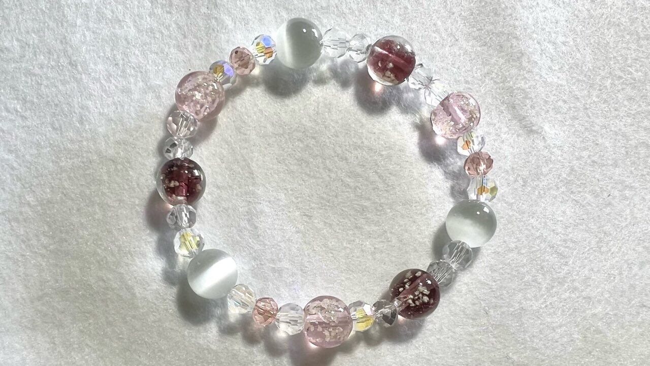 魔除けのホワイトキャッツアイガラスのブレスレットです