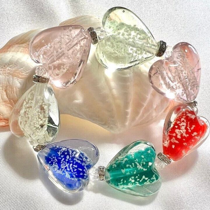 ▶︎カラフルな夜光ハートガラスのブレスレットです