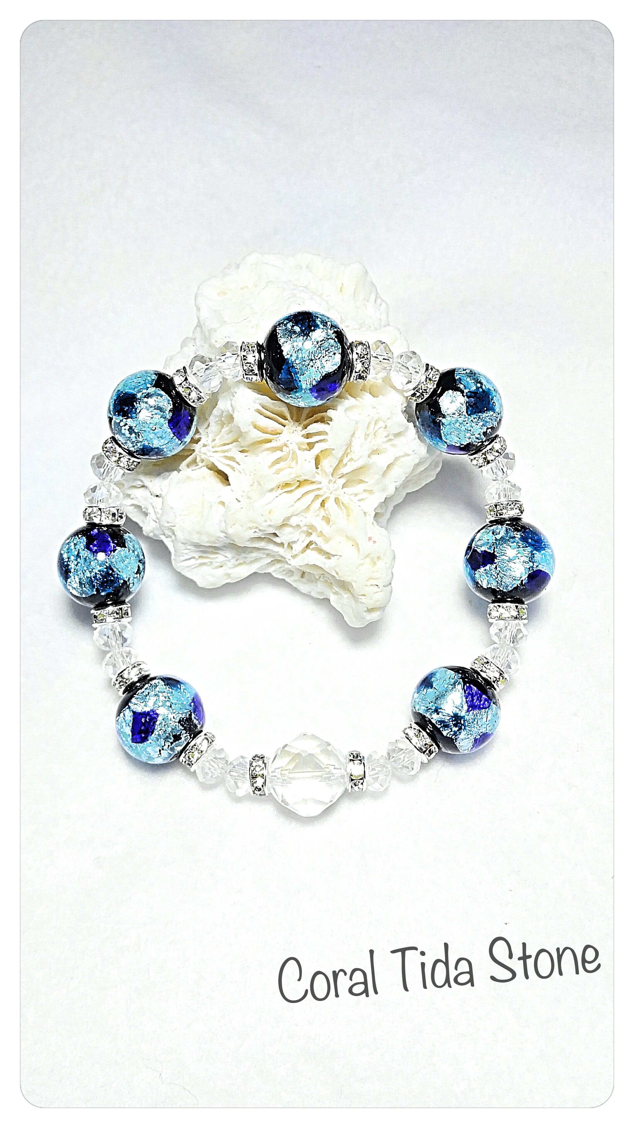 暗いところで幻想的に光る蓄光琉球ホタルガラスの大珠14mm 使用のブレスレットです✨✨✨