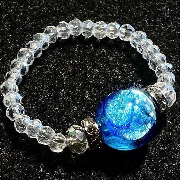 指先に小さな海の物語 ー 琉球ホタルガラス【蓄光】 指輪 宮古アイランドブルー8mm ー