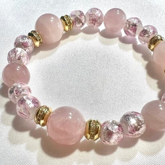 愛をそっと、手のひらに ー ディープローズクォーツ × 白ピンクホタルガラス【蓄光】ブレスレット ー