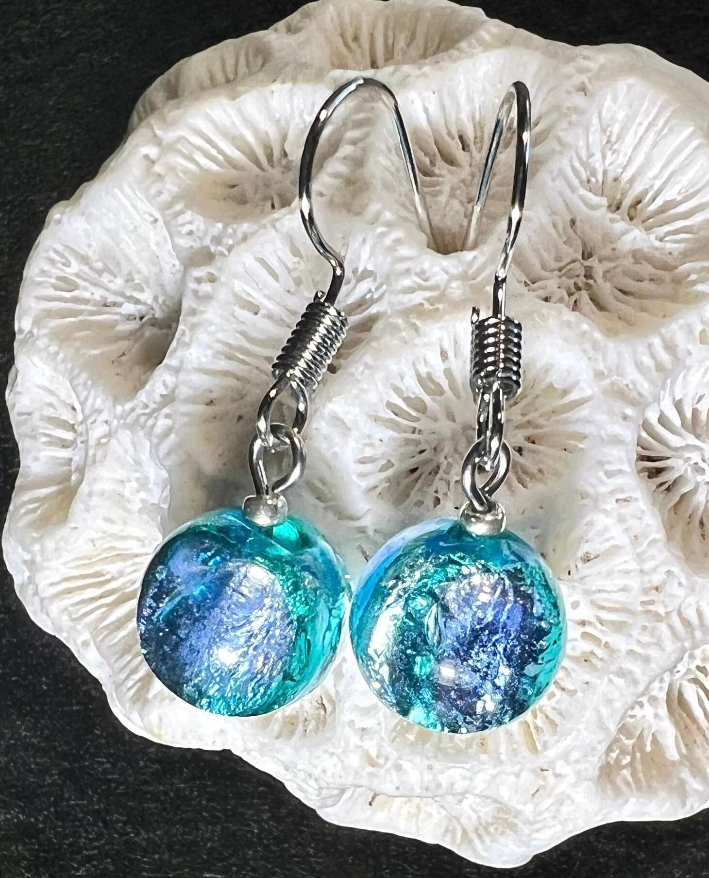 琉球ホタルガラスピアス|神秘のナベゾコ池ブルー 10mm