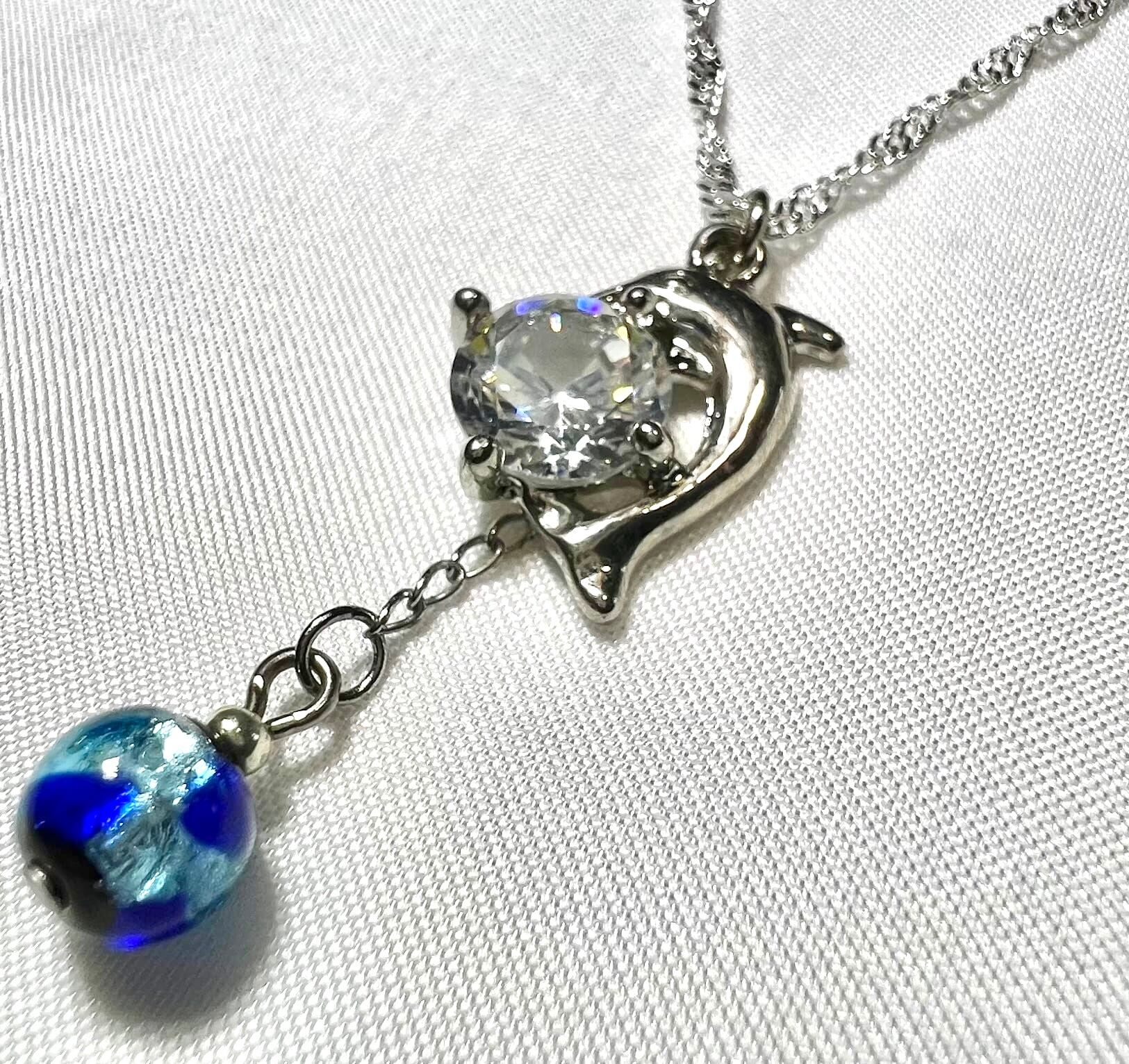 ドルフィンネックレス 琉球ホタルガラス付【煌めきと海と空の蒼が繋がるドルフィンジュエリー】