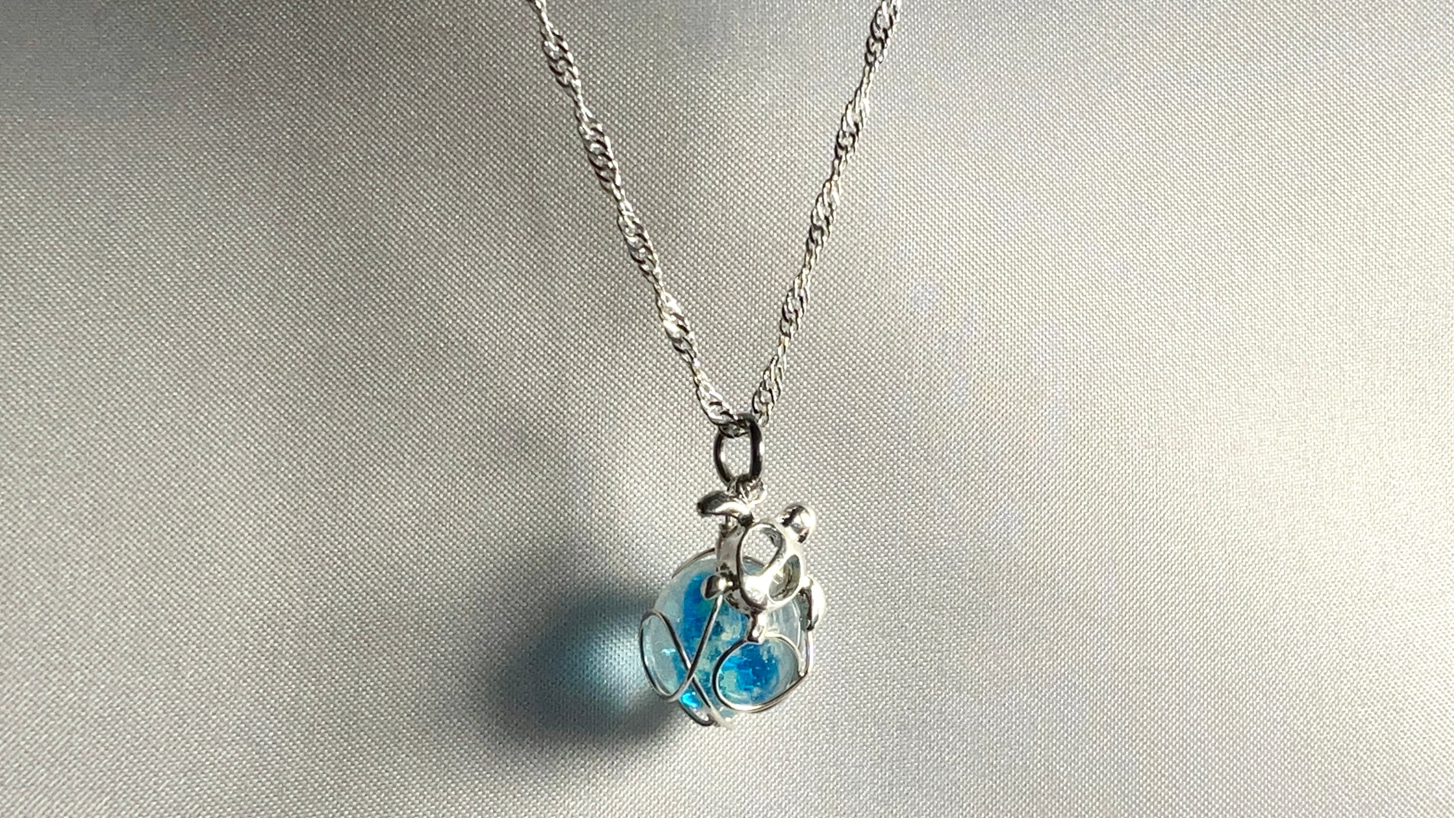海いろ夜光ガラスネックレス ミニウミガメ付