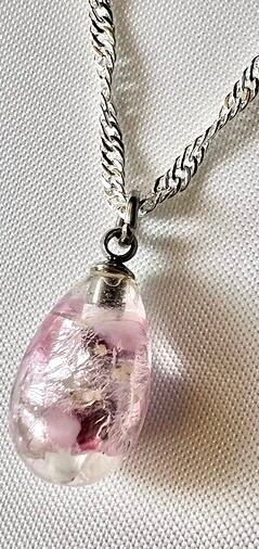 透明感のあるクリアガラスに、やさしいピンクを閉じ込めた琉球ホタルガラスのネックレスです。
