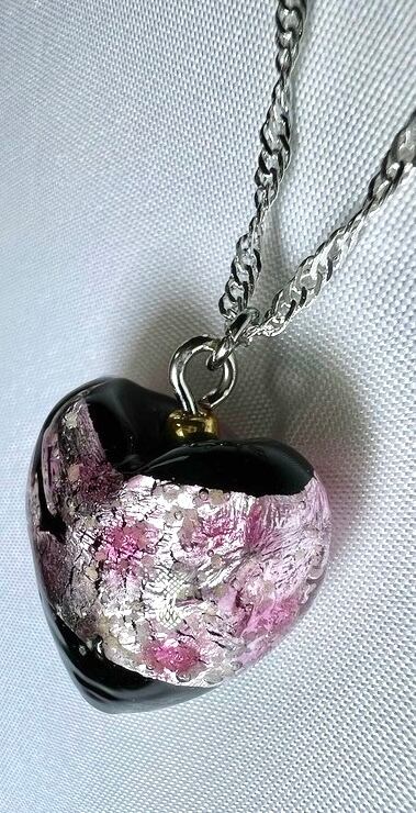 琉球ホタルガラスネックレス ハート20mm(蓄光) — 闇に咲く、恋色のきらめき —