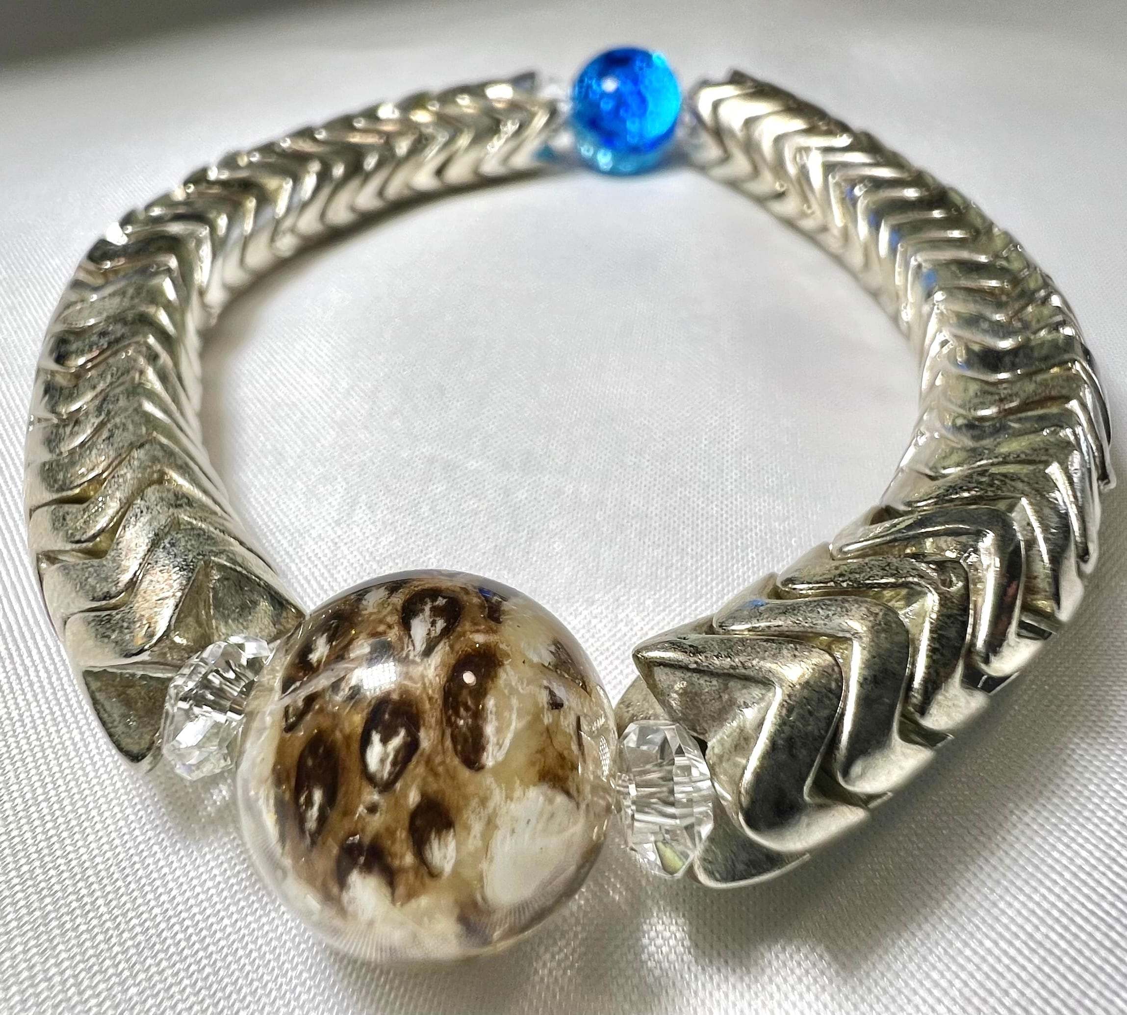 そして宮古アイランドブルーの琉球ホタルガラスを組み合わせたブレスレットです。