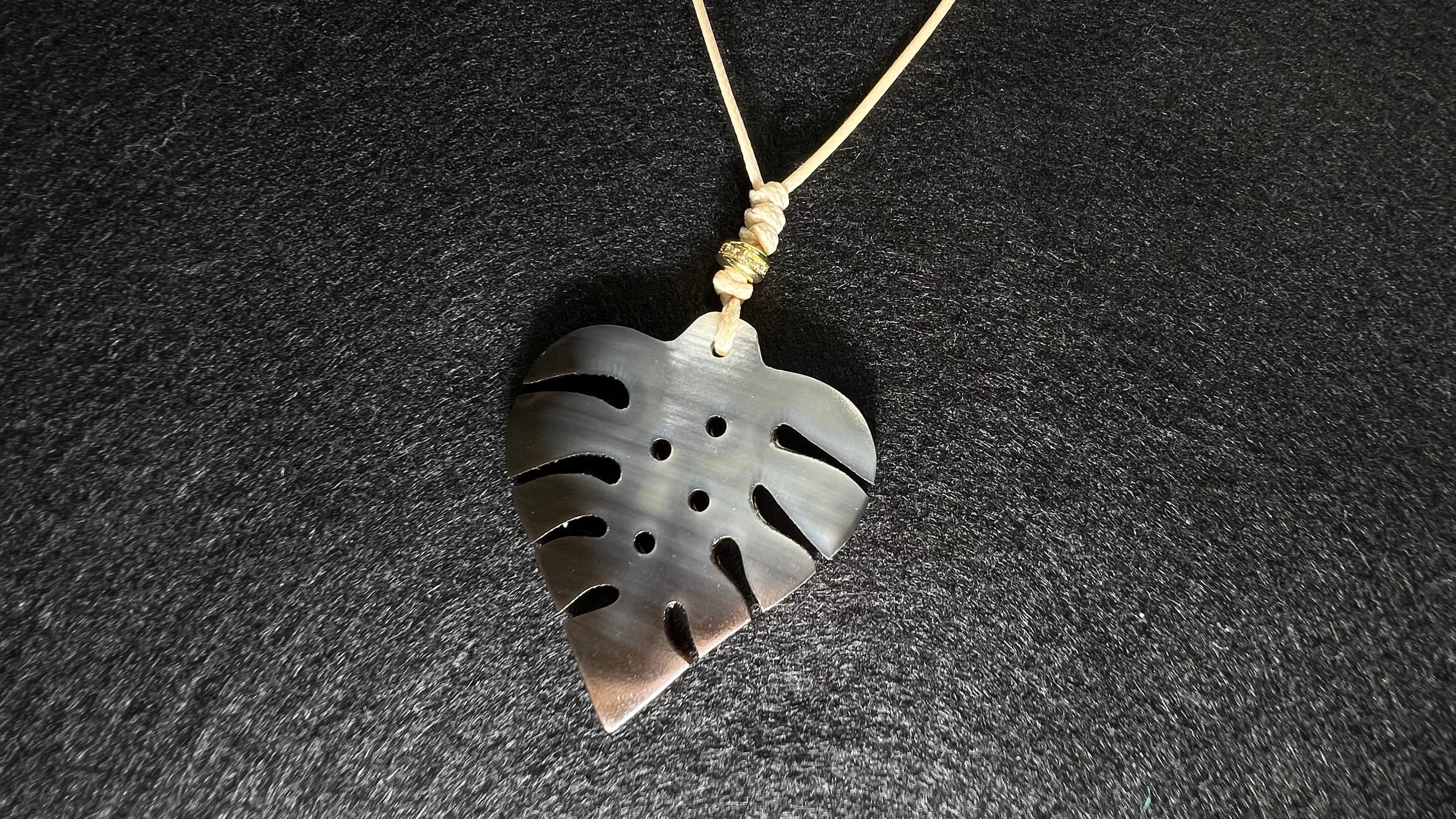 宮古牛の角を加工して作られたモンステラのネックレスです